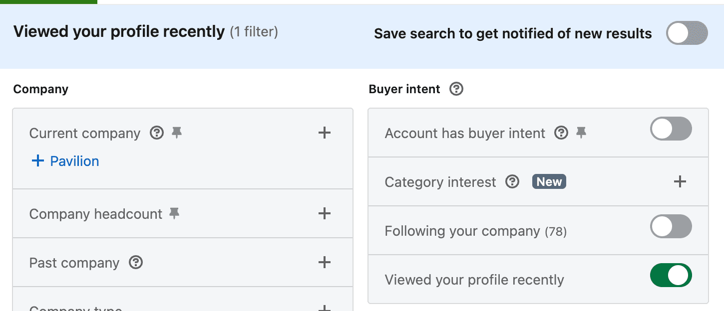 Check "Viewed your profile recently" in the Buyer Intent section of Sales Navigator. Review this filter at least weekly. When you see someone from a target account, reach out the same day while the curiosity is fresh. Bonus if you save this as a search to filter new leads that view your profile.